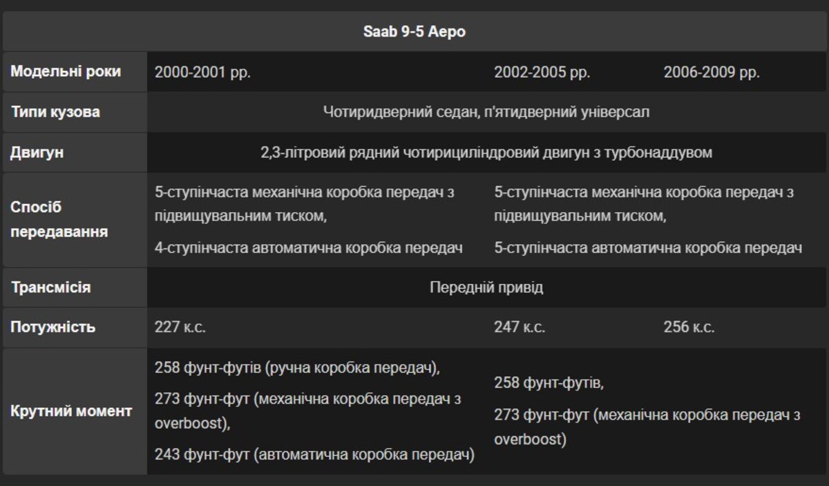 Попри це, навколо бренду сформувалася активна спільнота ентузіастів та мережа незалежних спеціалістів, що значно спрощує обслуговування. Якщо ви готові до такого досвіду, Saab 9-5 Aero залишається доступним способом стати власником стильного, надійного та недооціненого спортивного седана від компанії, яка завжди робила все по-своєму.