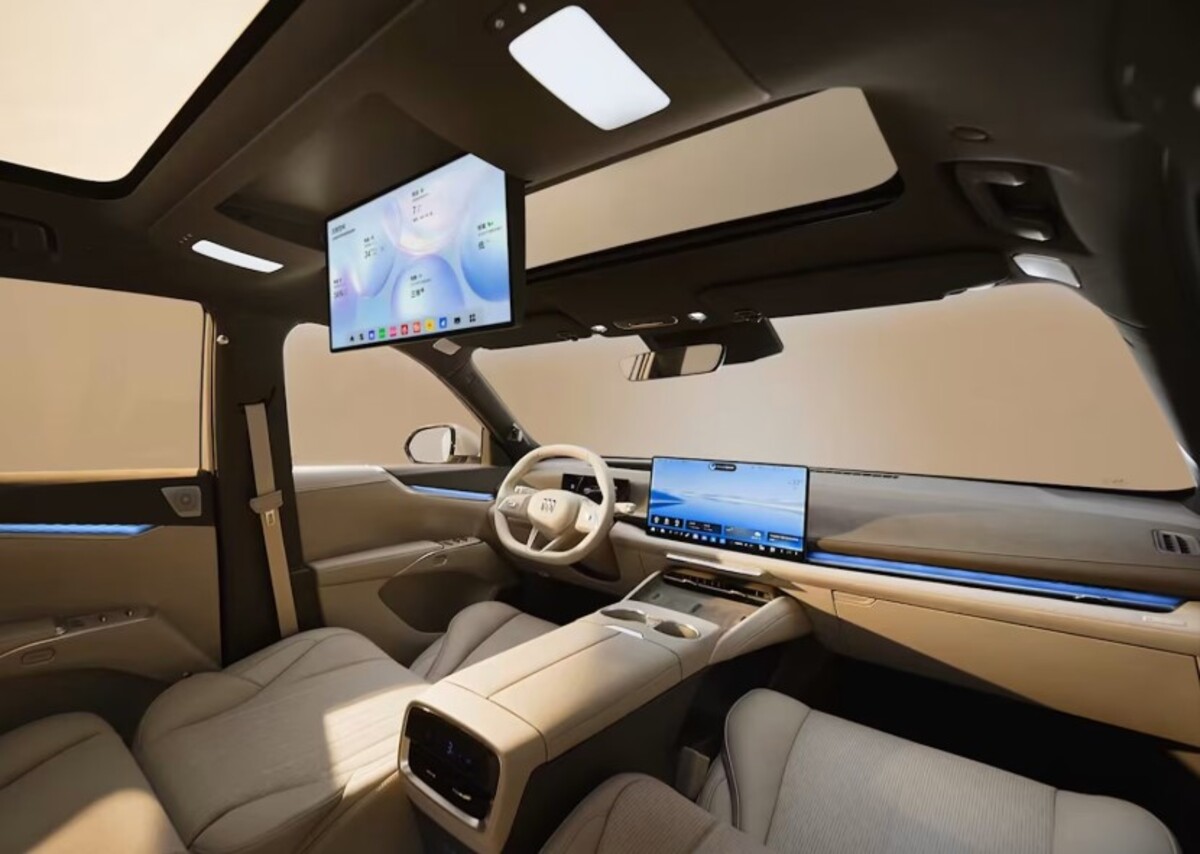 Наступним кроком у цьому напрямку став E7 SUV. Офіційні фотографії салону показують інтер’єр, який зовсім не схожий на будь-який автомобіль Buick у США. Простір нагадує сучасний лаунж із великим екранним комплексом, цифровими панелями та інноваційними рішеннями для комфорту пасажирів, що суттєво відрізняє E7 від американських моделей бренду.