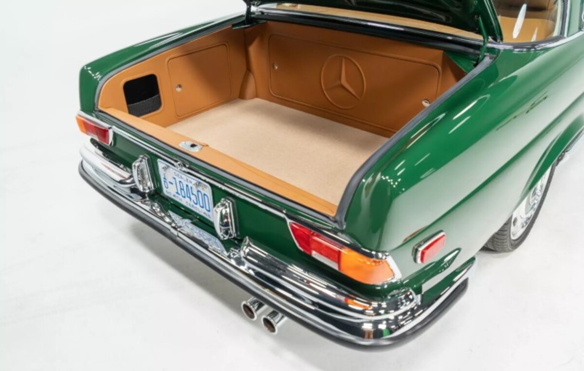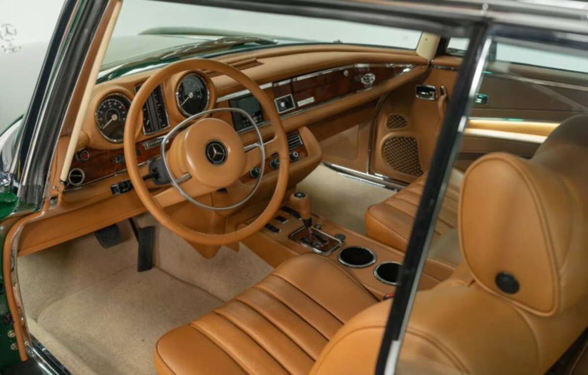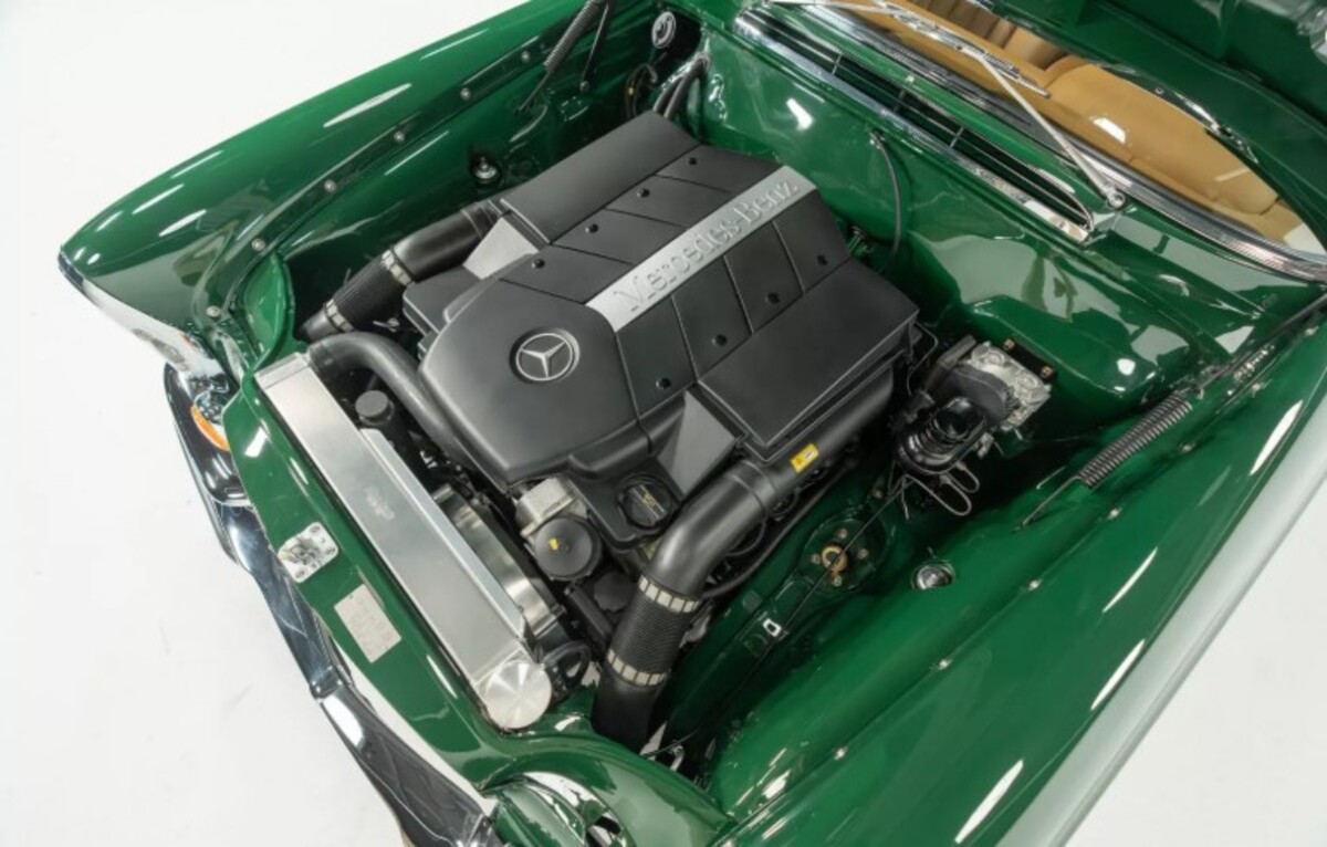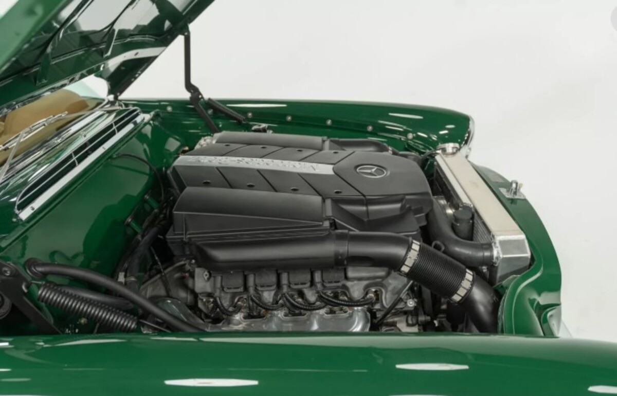Найбільша модернізація торкнулася двигуна. Оригінальний мотор замінили на 5,4-літровий атмосферний V8 з сучасного Mercedes C55 AMG. У свій час цей двигун видавав до 367 к.с. та 510 Нм крутного моменту — значно більше, ніж пропонував класичний 280SE. Крім того, встановлено нову електропроводку, кастомний паливний бак, радіатор та нержавіючу систему вихлопу.