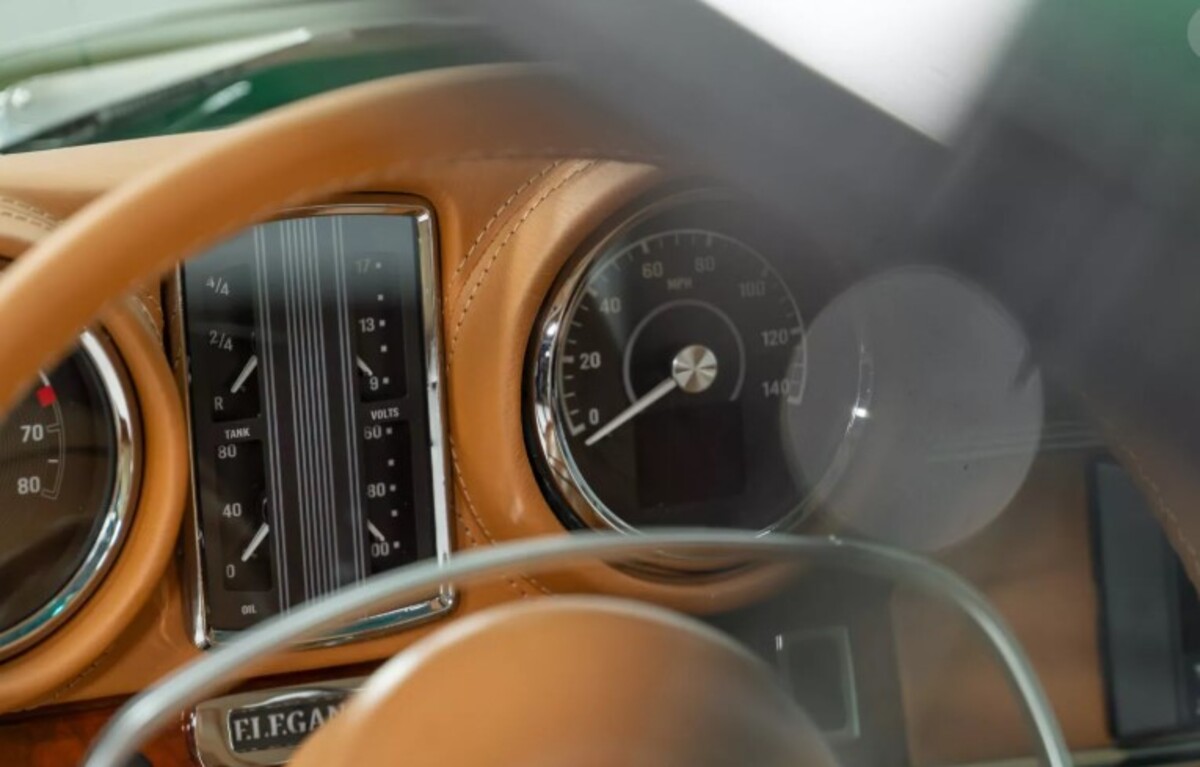 При детальному огляді помітні: стеля з матеріалу Alcantara, акустика Focal, унікальні Dakota-годинники в оригінальній панелі приладів та нова система клімат-контролю Vintage Air.