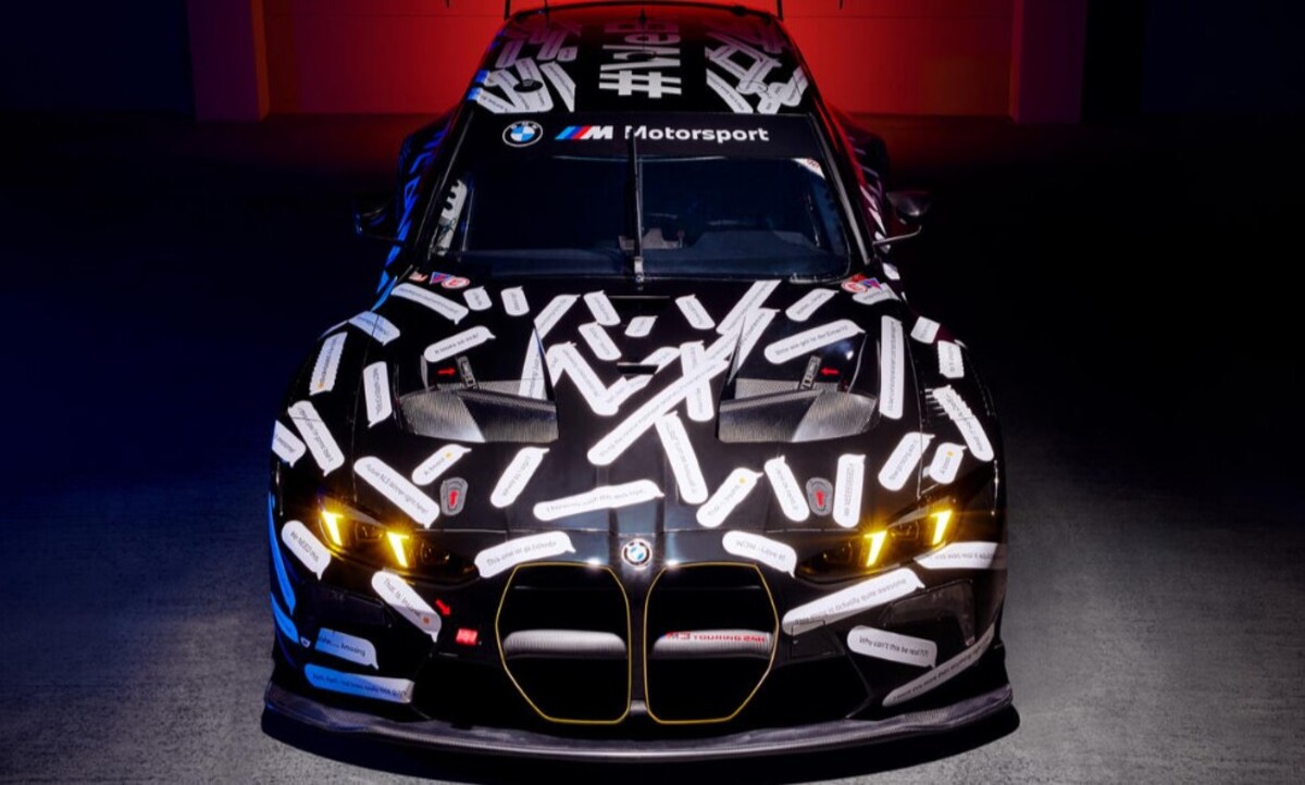 BMW називає новинку “автомобілем для фанатів”, і це не просто маркетинг. Для перших тестових перегонів універсал отримав незвичайне оформлення: на кузові розміщені реальні коментарі користувачів, які вони залишали під першоквітневим постом у соцмережах.