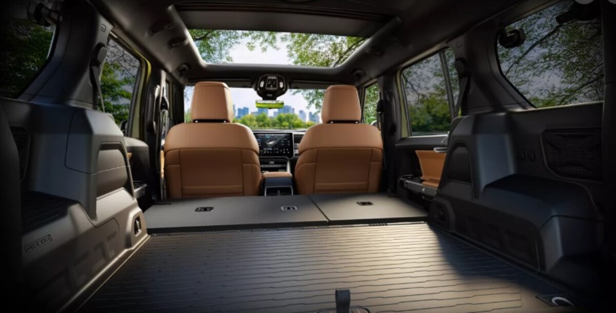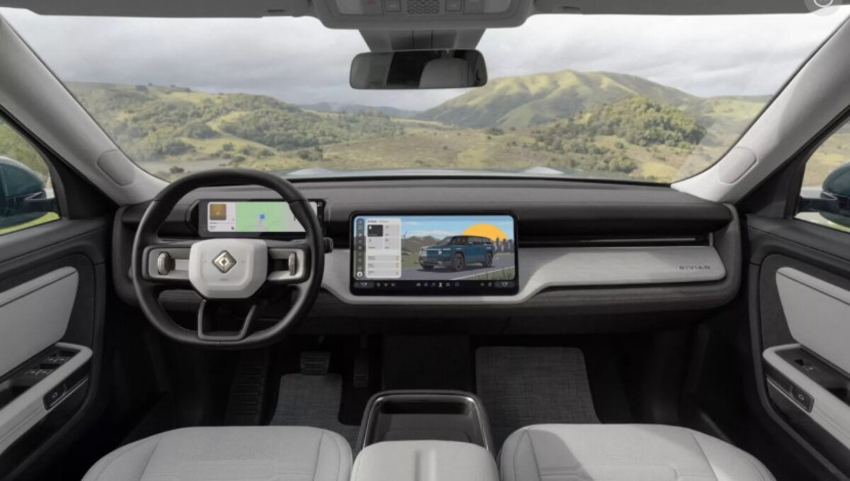 Rivian поки що розкрив небагато деталей про салон R2, але вже відомо, що покупцям запропонують інтер’єр Black Crater Signature з оздобленням із березового дерева.