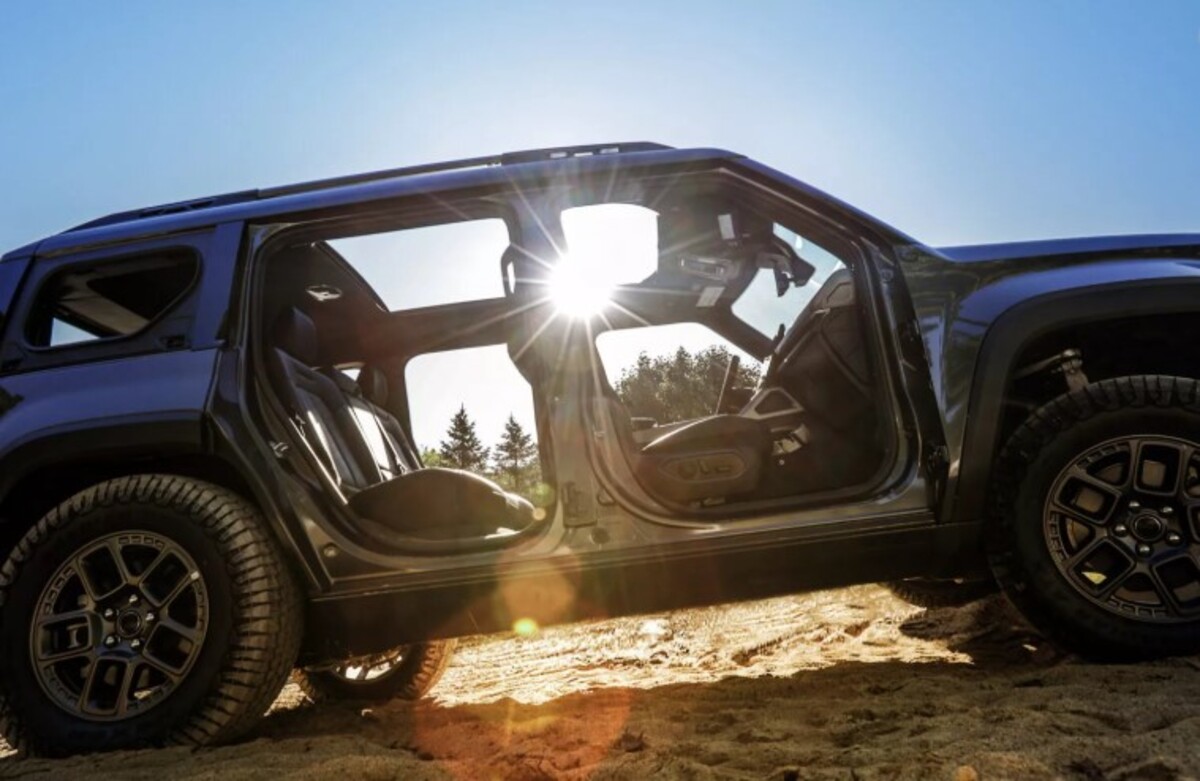 Хоча за цифрами Rivian R2 виглядає переконливіше, у Jeep Recon є свої козирі. Головний — унікальна конструкція кузова.У моделі можна знімати двері, задні бокові вікна та скло багажника без використання інструментів. Це дозволяє отримати справжній відкритий формат, який особливо цінується на бездоріжжі.Додатково доступний дах Sky One-Touch з електроприводом, що ще більше підсилює відчуття свободи.На цьому фоні Rivian R2 виглядає більш стримано: у нього є лише опускне заднє скло та панорамний дах.