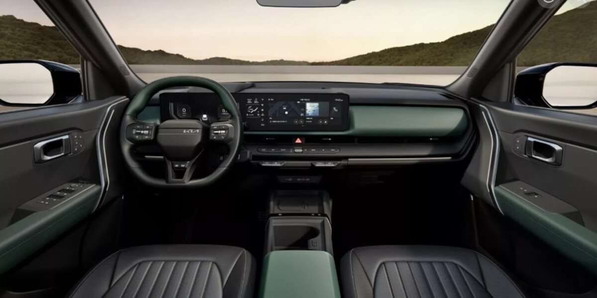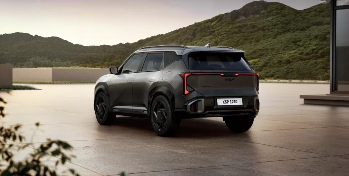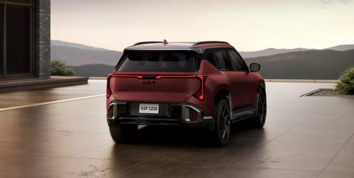 Дизайн задньої частини перегукується з електричним Kia EV5: вузькі вертикальні та горизонтальні LED-елементи створюють сучасний і технічний вигляд.