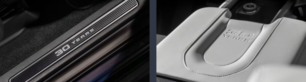 Інтер’єр також отримав низку ювілейних деталей. На порогах дверей встановлені спеціальні накладки з нагадуванням про 30-річчя моделі. Додаткові позначки розміщені на центральній консолі.